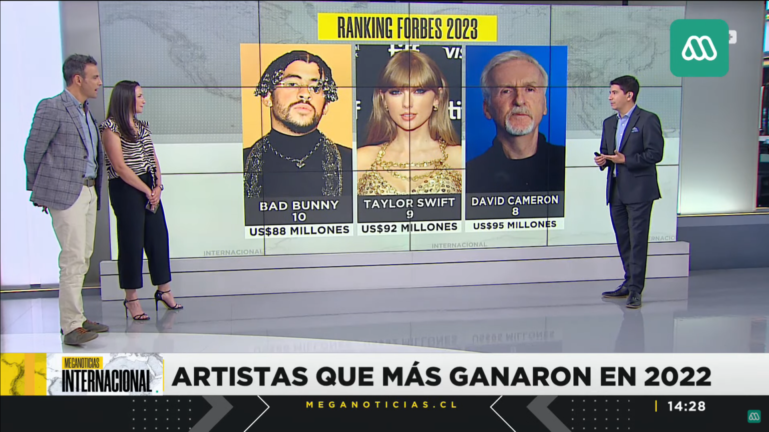 Durante el noticiero conducido por Gonzalo Ramírez se hablaba de los famosos con mayores ganancias, en la que Taylor Swift fue la única mujer presente en dicho ranking.