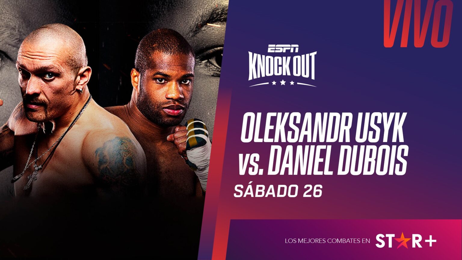 Una sensacional triple jornada de boxeo nos entregará ESPN KNOCKOUT este fin de semana, siendo los pesos Pesados los principales protagonistas, entre ellos el triple campeón de la división y considerado entre los mejores libra por libra Oleksandr Usyk, quien expondrá los cinturones AMB, FIB y OMB ante el peligroso Daniel Dubois.