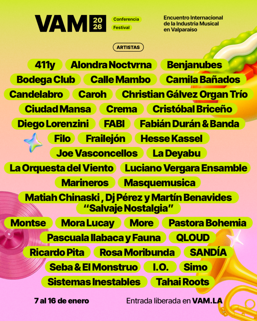 Valparaíso acoge una nueva edición del VAM 2026, el Encuentro Internacional de la Industria Musical que se inicia hoy, 7 de enero. Consolidado como una plataforma esencial para el intercambio, la formación y la proyección internacional de la música chilena y latinoamericana, el evento se desarrolla en el marco de la designación de Valparaíso como Ciudad Creativa de la Música por la UNESCO.