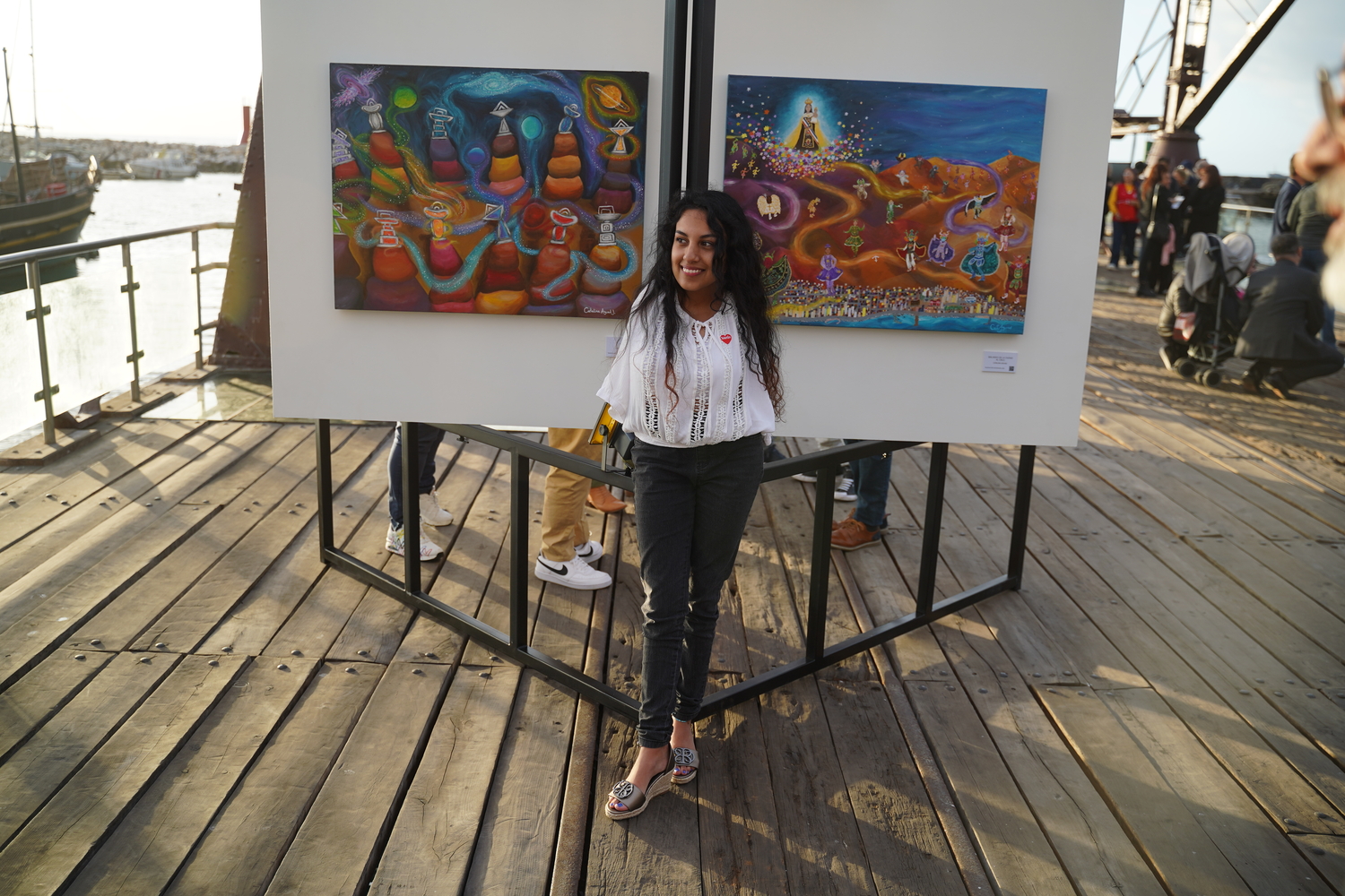 Cada pintura cuenta una historia única. Por ejemplo, Camila Silva, una de las artistas, compartió su inspiración detrás de su obra “Atardecer en el muelle”, que rinde homenaje a la historia del Muelle Histórico y busca transmitir la idea de que nunca se debe olvidar el pasado.