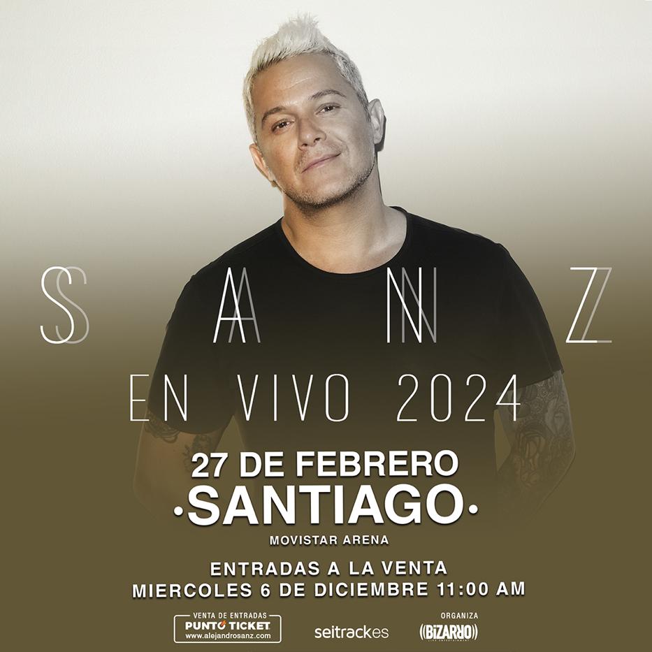 De esta forma, “Sanz en Vivo”, el tour mundial que está llevando a cabo el destacado artista y que ha agotado los conciertos en Latinoamérica, España, Estados Unidos y México, llega a Santiago el 27 de febrero próximo.